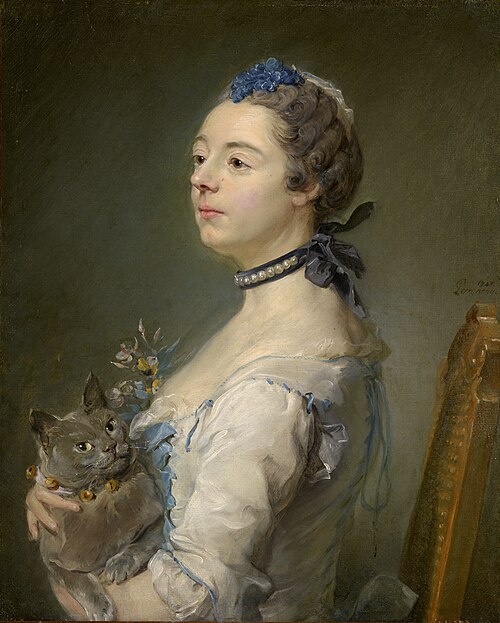 Portrait of a French lady, Magdaleine Pinceloup de la Grange, represented with her Chartreux cat in 1747 by artist Jean-Baptiste Perronneau. Today is International Cat Day.