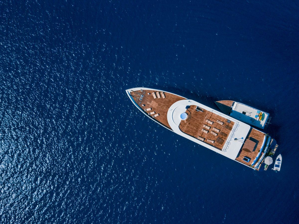 Four spacious decks offer sleek accommodation range, SPA, small fitness room, jacuzzi, deck hosting sunset cocktails and star gazing outdoor dinners, bar & restaurant and an open-air cinema for evening entertainment. Yoga classes are offered, with the help of our expert yogis you can gain both physical and mental poise whilst surrounded by the most sublime tropical ocean sanctuary.